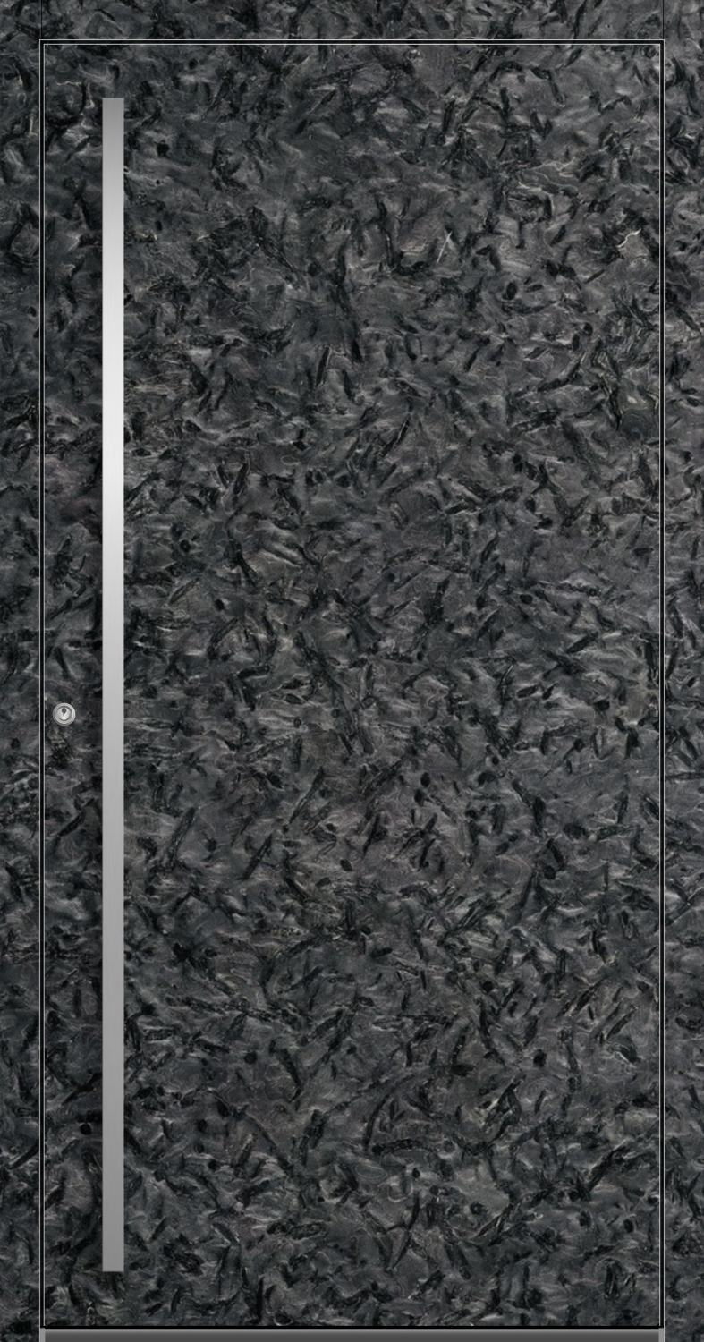 Dank durchdachter Mehrkammer-Konstruktion und hochwertigen Dichtungen sorgt die Tür für eine hervorragende Wärmedämmung von 0,75 W/m²K und trägt nachhaltig zur Energieeffizienz Ihres Hauses bei. Die RC2-Widerstandsklasse bietet geprüften Schutz vor Einbruchsversuchen. Der Quarzit Matrix erinnert an Schiefer und verleiht jeder Tür eine einzigartige Maserung, die zu modernen und minimalistischen Fassaden passt.