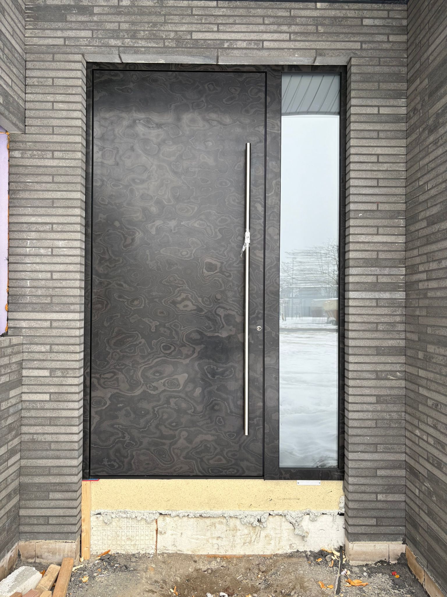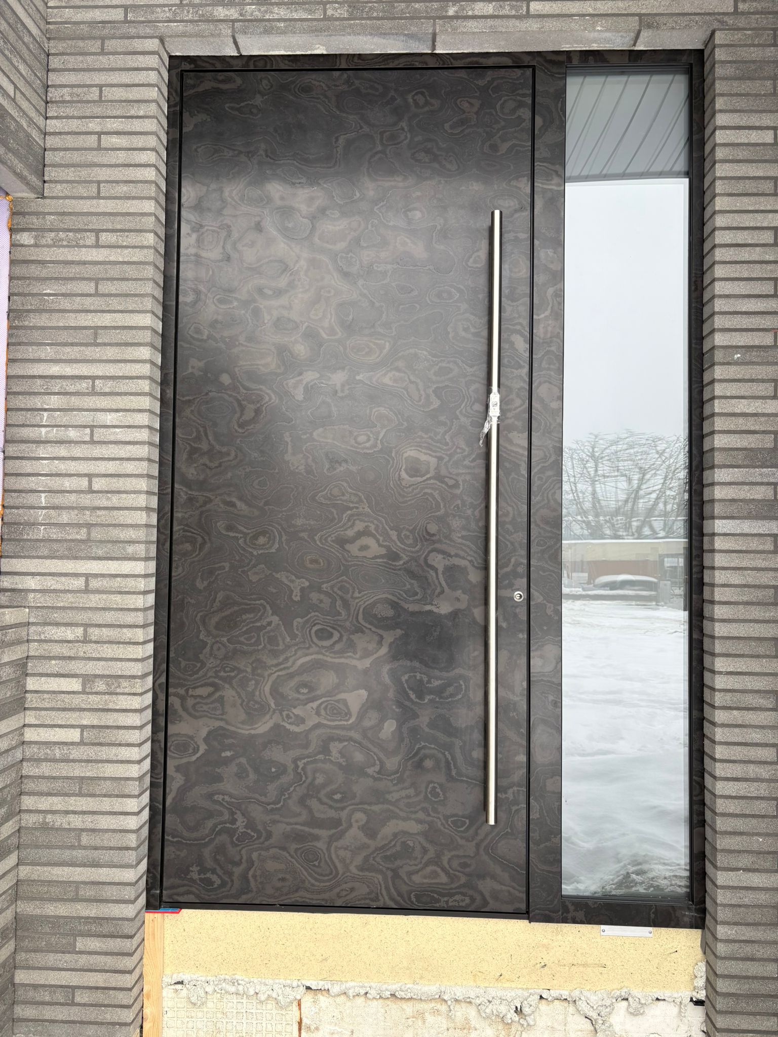 Aluminium-Stein Haustür ein handgefertigtes Unikat mit Naturstein Elegant Black geblühmt